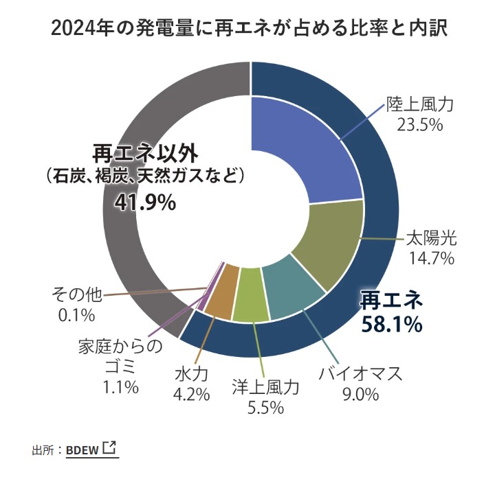 西ドイツは6割が再生エネルギーです。再生エネルギーは自然の変化によって発電量が不安定なことが課題です。